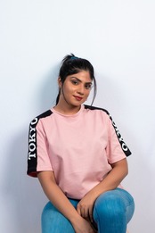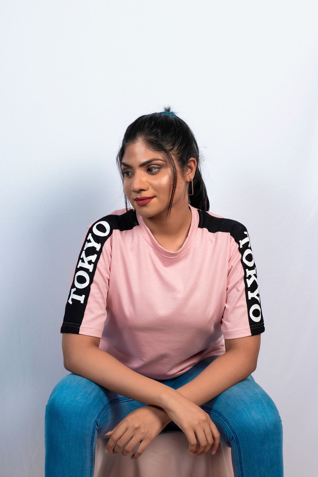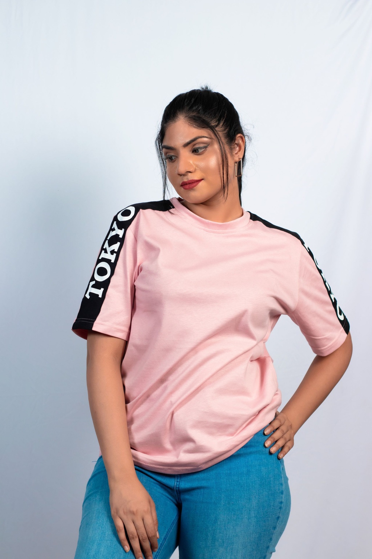 Tokyo Shoulder Print Baggy T-shirt - PEACH
