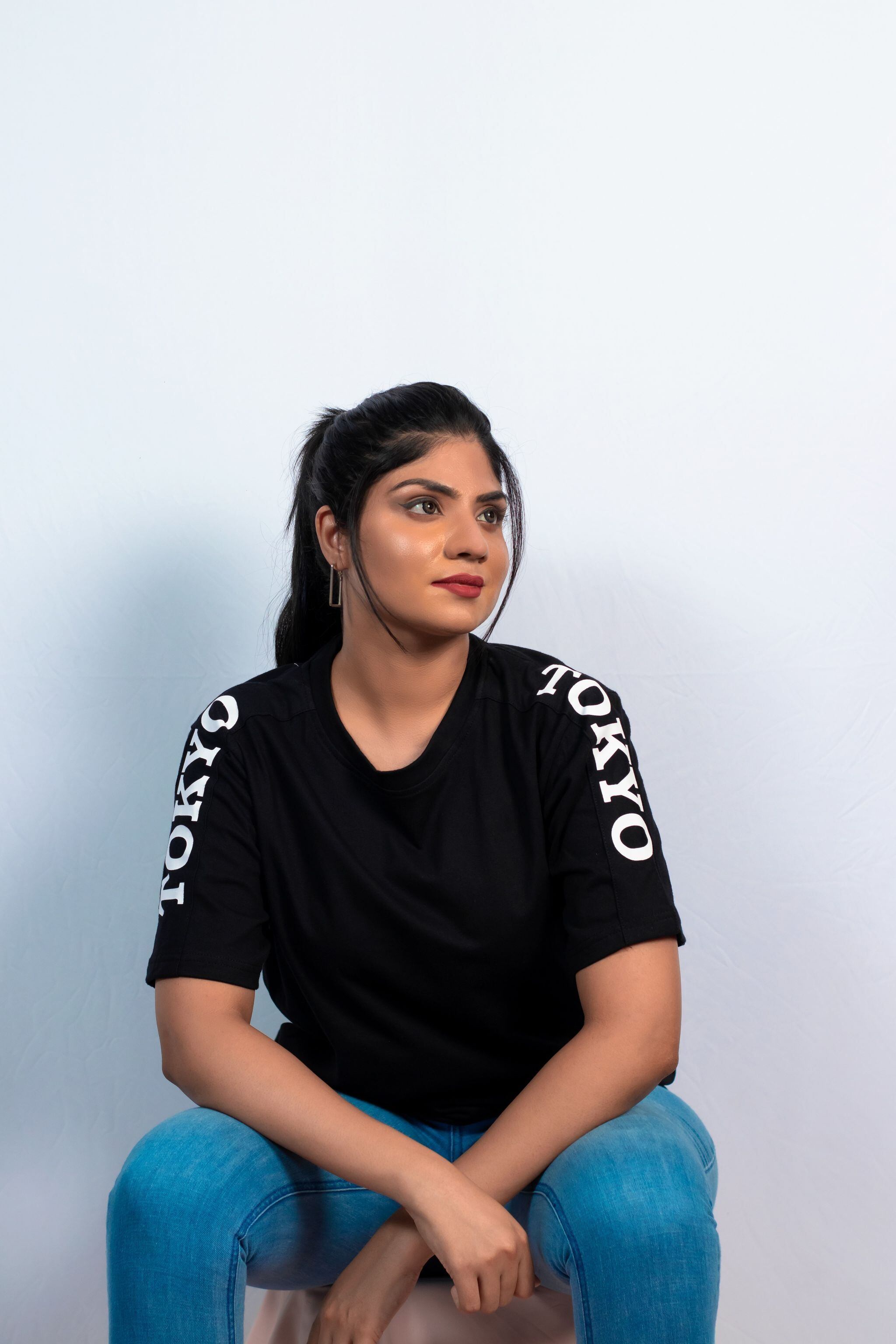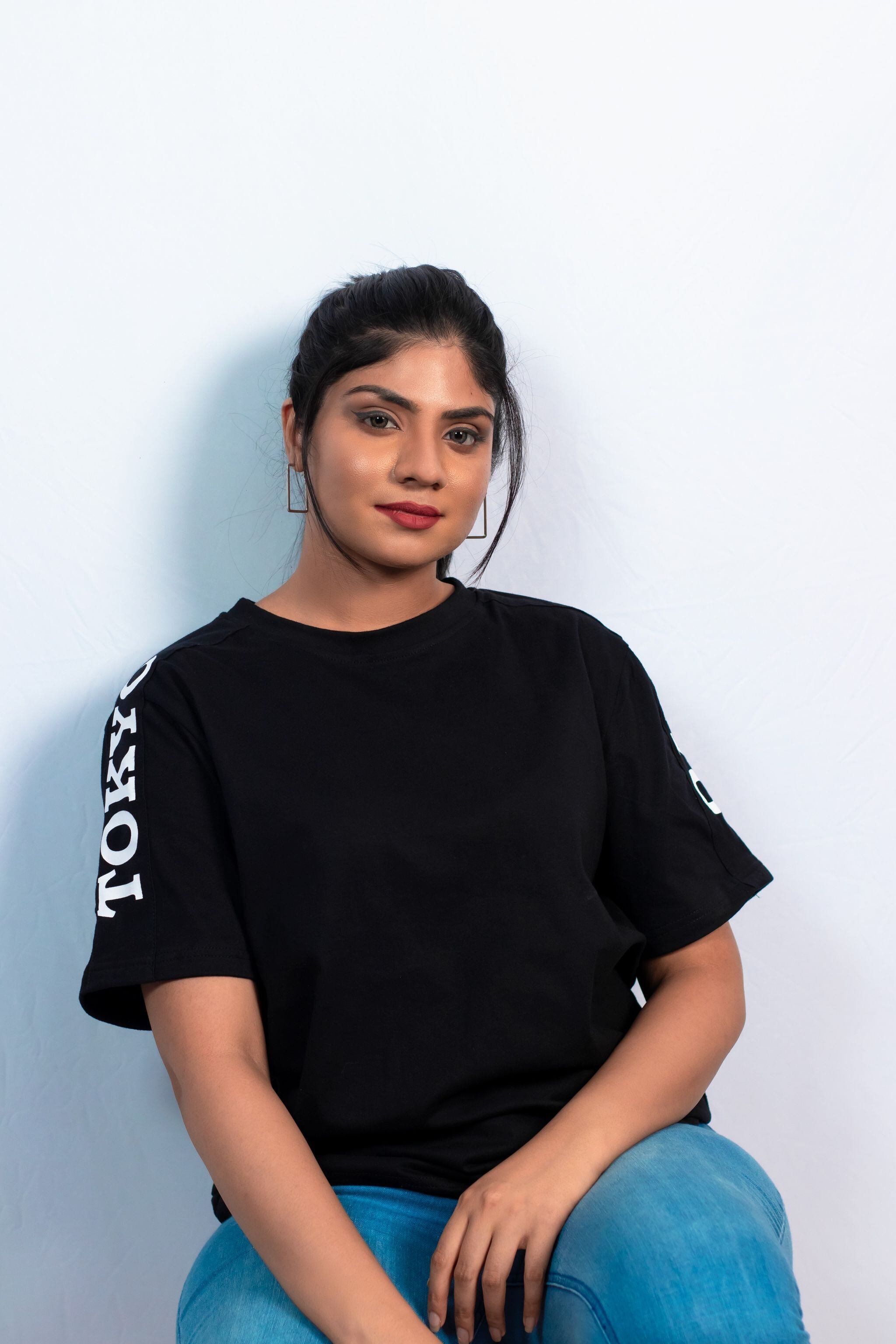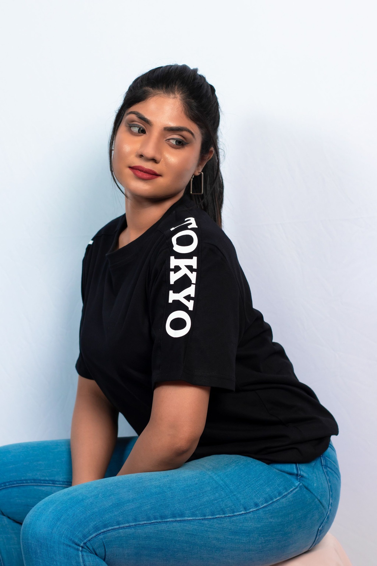 Tokyo Shoulder Print Baggy T-shirt - BLACK